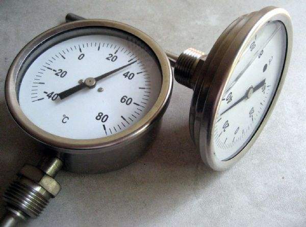 是基于繞制成環性彎曲狀的雙金屬片組成。一端受熱膨脹時,帶動指針旋轉,工作儀表便顯示出所應的溫度值,并且防止環境振動在溫度計內部充裝硅油或者將溫度計顯示部分與測量部分分離以達到耐震的效果。